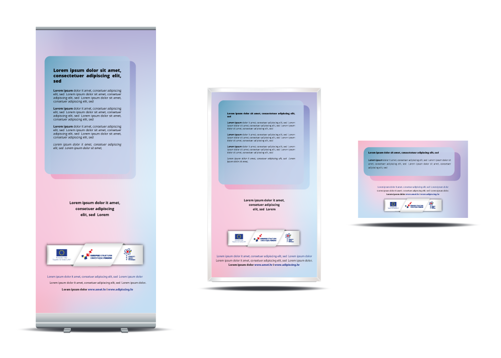 U sklopu mjere informiranja i komunikaciju o projektima također je potrebno izraditi tiskane materijale: rollup banner, A3 plakat i A5 letak. Prilikom izrade potrebno potrebno je pratiti po stroge upute Europske unije.